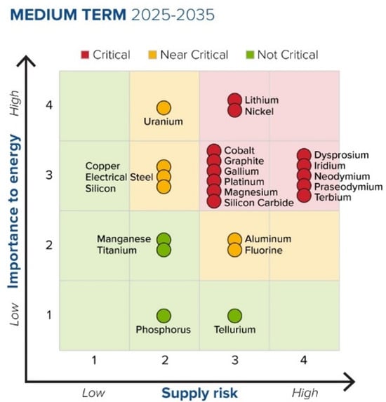 - U.S. Department of Energy. Critical Materials Assessment; DOE/EE-2756; U.S. Department of Energy: Washington, DC, USA, 2023. [Google Scholar]
