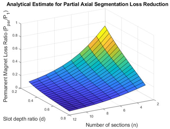 The ratio of the loss of the magnet with and without partial axial segmentation is given in Equation (18). This can be used to estimate the expected reduction in permanent-magnet loss and provide insight into how the slot geometry impacts the permanent-magnet loss.