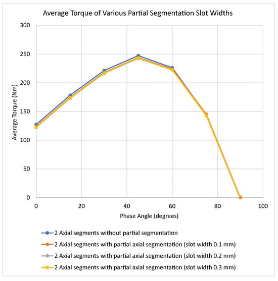 Average torque of the partial axial segmentation design with various slot widths.