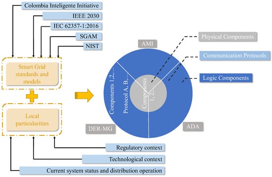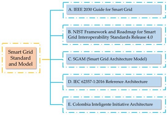 Throughout this section, the standards and models as IEEE, NIST, SGAM, IEC, and the Colombian initiative called “Colombia Inteligente” [], illustrated in Figure 3, are described for the design of the new DSO.
