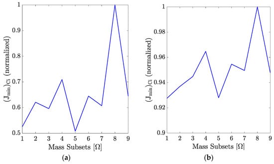 The optimization results also show the minimum value of the cost function for each mass subset in both driving modes. The minimum cost values are normalized and plotted in Figure 6 to analyze the variation with increase in mass.