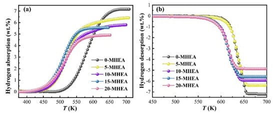 - Wan, H.; Yang, X.; Zhou, S.; Ran, L.; Lu, Y.; Chen, Y.; Wang, J.; Pan, F. Enhancing hydrogen storage properties of MgH2 using FeCoNiCrMn high entropy alloy catalysts. J. Mater. Sci. Technol. 2023, 149, 88–98. [Google Scholar] [CrossRef]