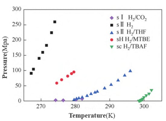 - Kim, M.K.; Ahn, Y.H. Gas Hydrates for Hydrogen Storage: A Comprehensive Review and Future Prospects. Korean J. Chem. Eng. 2024, 41, 73–94. [Google Scholar] [CrossRef]
