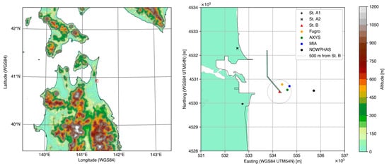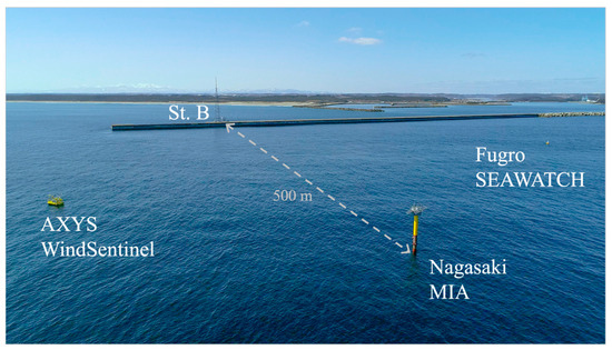 Data from the Mutsu-Ogawara Port observatory site (St. B and all FLSs) were collected as a part of the NEDO project. The wave data were obtained from the NOWPHAS website (https://www.mlit.go.jp/kowan/nowphas/index_eng.html, accessed on 23 December 2024).