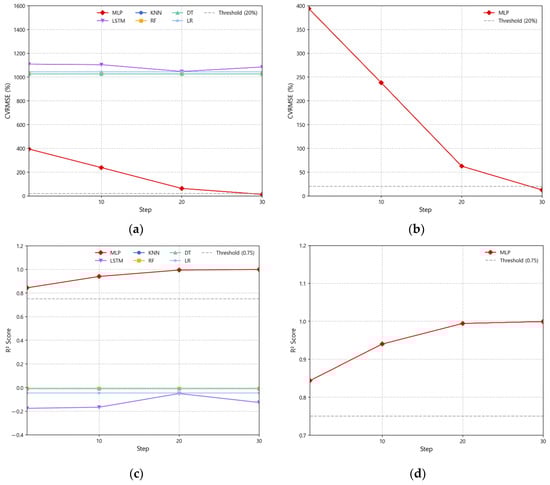- MLP (second): R2 = −0.2236, CVRMSE = 49.58%, and relative accuracy = 67.90%. It failed to adapt to complex patterns, and its performance significantly deteriorated;