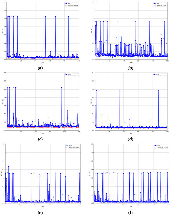 Figure 10. Hyperparameter tuning and optimization. (a) MLP prediction model for small sample size case—Optuna optimization; (b) MLP prediction model for large sample size case—hybrid optimization; (c) MLP prediction model of the 1st process calibration dataset—Optuna optimization; (d) MLP prediction model of the 2nd process calibration dataset—Optuna optimization; (e) MLP prediction model of the 3rd process calibration dataset—Optuna optimization; (f) MLP prediction model of the 4th process calibration dataset—Optuna optimization. - Figure 10b presents the large-sample scenario: rolling-window validation prevents overfitting, yielding an MSE of 0.0556, CVRMSE = 18.38%, and R2 = 0.87. CUDA-enabled GPU parallelization ensures these 500 trials are completed in just 20–40 min;