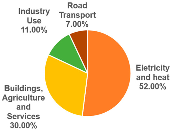 Global energy production based on biogas and biomethane reached over 1.6 EJ in 2022 [10]. The United States is currently the leading biomethane producer, contributing 38.0% of global output. California is notable for using biomethane in 97.0% of its gas-powered vehicle fleet [10]. When the total energy generated from biogas is considered, the European Union becomes the largest producer, followed by China, the United States, and India. The consumption patterns of biogas and biomethane vary by country and region, with nations such as India and China primarily using biogas for residential purposes, while the European Union employs a significant portion of its biogas and biomethane production for electricity and heat generation [10]. As shown in Figure 1, the use of biomethane as a vehicle fuel worldwide still accounts for only a small fraction of total global production—merely 7.0% in 2023 [10].