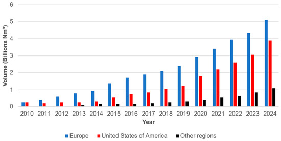 Biogas production in Brazil began with small domestic installations, where the gas was primarily used for thermal energy. Over the years, biogas has gained prominence in the country, especially for use in electricity generation. Figure 4 illustrates the recent growth observed over the last 10 years, showing an 87% increase in the volume of biogas produced.
