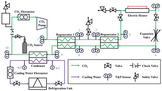 - Xing, K.; Xiao, G.; Xu, H.; Ji, Y. Experimental and numerical investigation on the dynamic characteristics of a lab-scale transcritical CO2 loop. Energy Convers. Manag. 2021, 245, 114384. [Google Scholar] [CrossRef]
