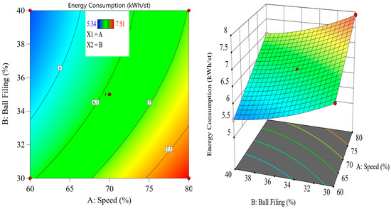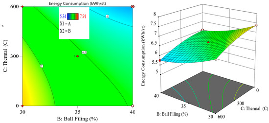 8] found that thermally pretreated iron ores displayed increased reactivity and fragmentation behavior, leading to more efficient grinding in downstream processing. These findings suggest that thermal pretreatment, and specifically microwave-assisted grinding, could play a pivotal role in reducing the energy footprint of ball milling operations. Despite the potential benefits of thermal pretreatment, there is still a need for further research to fully understand the interactions between thermal exposure and grinding performance. Key variables, such as the intensity and duration of the thermal treatment, the ball filling ratio, and mill speed, must be carefully optimized to maximize energy savings and ensure efficient grinding. Additionally, the integration of these variables into advanced experimental designs, such as the Box–Behnken design, provides a systematic approach to evaluating the effects of multiple factors on energy consumption and particle size distribution [