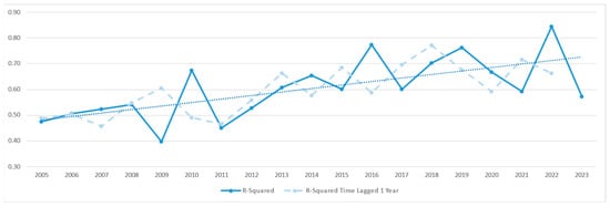 R-Squared values for the entire model from 2005 to 2023. Source: own elaboration.