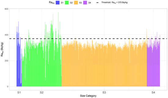 When the AI < 1, the 226Ra activity concentration measured in any building material does not exceed 200 Bq kg−1 [71,73].