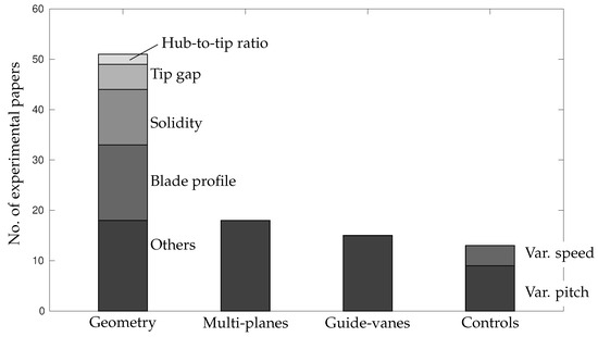 | Istituto Superior écnico, Lisbon (PT) | Unidirectional/Stationary | Monoplane [43], biplane [52], contra-rotating [53], with guide vanes [54] | 593 |