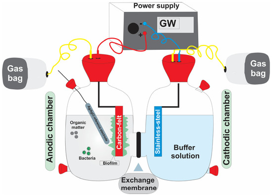 - O’Brien, J.P.; Malvankar, N.S. A Simple and Low-Cost Procedure for Growing Geobacter sulfurreducens Cell Cultures and Biofilms in Bioelectrochemical Systems. Curr. Protoc. Microbiol. 2016, 43, A-4K. [Google Scholar] [CrossRef] [PubMed]