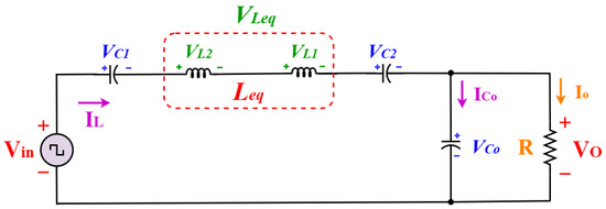 Kirchhoff’s voltage and current laws applied to each component are used to build the averaged state-space model of the DAB converter with a CLLC filter. These states consist of the current flowing through the inductor and the voltages across the capacitors. The system’s states are Inductor Current () and Capacitor Voltages ():
