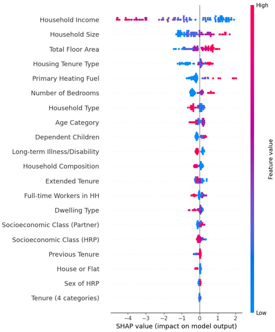 | Interpretability | Fixed rule-based approach, difficult to break down individual household-level factors | SHAP values show the contribution of each feature to an individual household’s classification |