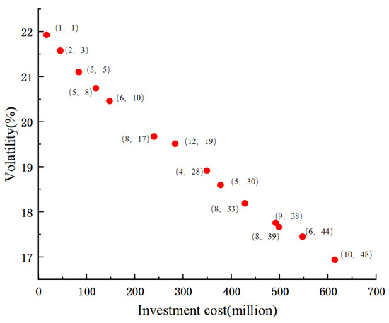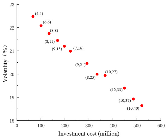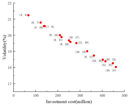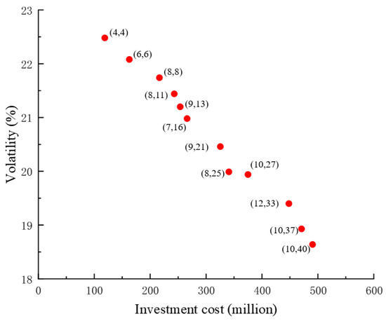 Figure 3 shows the Pareto frontier obtained by NSGA-II, which reflected the optimal allocation of the energy storage capacity and power under different cost constraints.