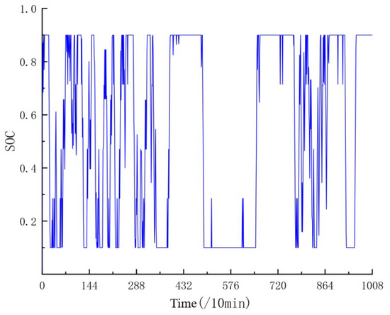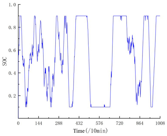 Figure 10 show the state charge (SOC) change curve of the energy storage system batteries with different proportions of energy storage, indicating that the SOC of the batteries was kept within a reasonable range during the entire operation cycle, thus ensuring the stable operation and efficient management of the energy storage system.