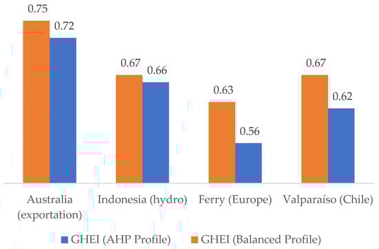 Ultimately, both profiles rank Australia and Indonesia at the top, confirming that projects with clear renewable sourcing and high-impact end uses deliver robust GHEI scores. Valparaíso and Ferry remain viable but illustrate the importance of context-specific optimization. The dual-profile analysis reinforces the decision-making capacity of the GHEI and highlights its adaptability across varying technical, environmental, and industrial priorities.