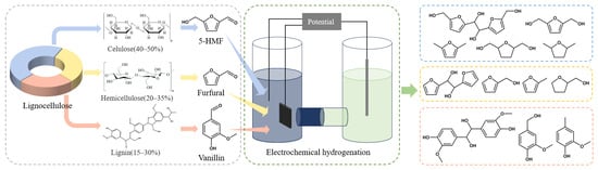 - Wang, K.; Li, Z.; Guo, Z.; Huang, J.; Liu, T.; Zhou, M.; Hu, J.; Li, H. Electroreductive Upgradation of Biomass into High-Value Chemicals and Energy-Intensive Biofuels. Green Chem. 2024, 26, 2454–2475. [Google Scholar] [CrossRef]
