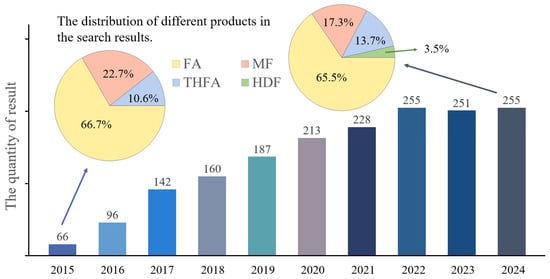 Using “furfural” and “hydrofuroin/furfuryl alcohol/2-methylfuran/tetrahydrofurfuryl alcohol” as keywords, Web of Science was searched for research results on different reduction products of furfural during 2015–2024.