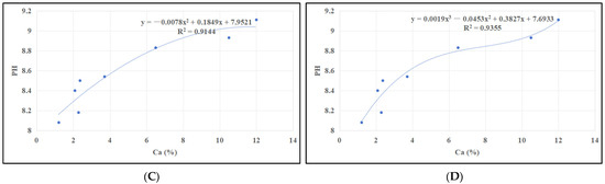 The fitting equation of pH by calcium content (Table 2 and Figure 3). By comparing logarithmic fitting, linear function fitting, and multiple function fitting, it is found that cubic polynomial fitting has the best effect.