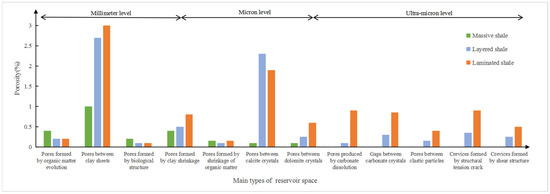 Contribution of main reservoir space types to porosity of Paleogene shale reservoirs in Jiyang Depression.