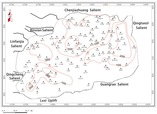 In the northern part of Shandong Province, Dongying Sag is the area with the most abundant oil and gas in the Jiyang Depression. It covers about 5850 km2. It faces Qingdong Sag in the east and has an over-relationship with Luxi Uplift and Guangrao Salient in the south. In the west, it is bounded by Qingcheng Salient and Linfanjia Salient, and, in the north, it reaches Binxian Salient and Chenjiazhuang Salient. In the formation and evolution of the basin, the fault activity in the north is the strongest, making Dongying Sag a typical asymmetrical braided basin with a “steep dip angle in the north limb and gentle in the south” (Figure 1) [23].