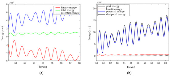 To verify the energy conservation, Figure 5 shows the transient energy dynamic balance process of DFIG under load disturbance (225 MW input at 50 s). The data in the figure were extracted by DIgSILENT simulation with a sampling interval of 0.01 s and the energy components were calculated by the trapezoidal integration method.