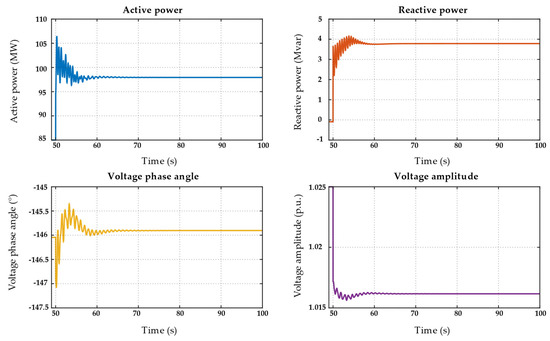 During the simulation process, the voltage phase angle, active power, reactive power, and equivalent power angle data of the DFIG port are collected, and the port energy function is calculated by the trapezoidal integration method, and the equivalent inertia time constant Hvsg is finally inverted based on the equation of conservation of energy. The quantity measurements are shown in Figure 6.