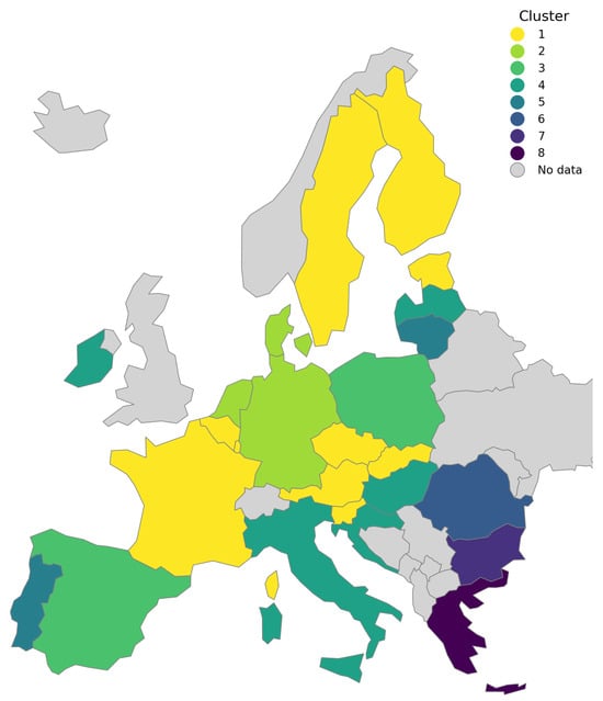 A k-means cluster analysis was conducted for 2015 and 2023, identifying eight and seven clusters, respectively, ordered by increasing risk of energy poverty. This analysis demonstrated a degree of partial convergence, with the gap between the best and worst-performing clusters narrowing. Notably, several Central and Eastern European countries, such as Poland, transitioned to lower-risk clusters, reflecting income growth, improved housing efficiency, and supportive policies. Conversely, some Southern European countries, like Spain, experienced a worsening of their relative positions, particularly exacerbated by the recent energy price crisis. Northern and Western European countries largely maintained their low-risk status, albeit with some minor shifts. The reduction in the number of clusters and the movement of countries between them underscored the dynamic nature of energy poverty, influenced by economic recovery, subsequent crises, and national policy responses.