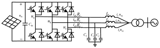 By applying a coordinate transformation, the above equations are converted into the synchronous rotating reference frame. Considering that the influence of the filter capacitor Cf is relatively small [22], the capacitor can be neglected, resulting in the mathematical model as expressed in Equation (3).