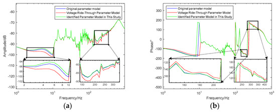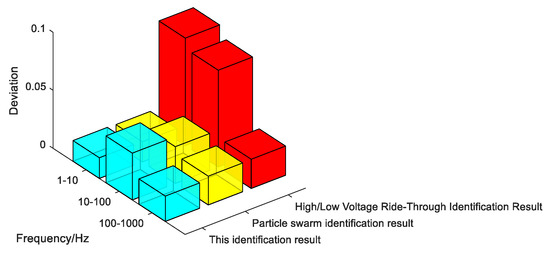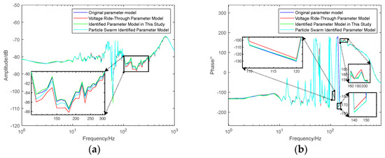 The three sets of identification results were, respectively, applied to the photovoltaic power generation unit model, and their impedance characteristics are shown in Figure 10.