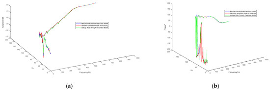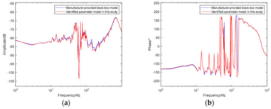 Figure 16 presents the impedance characteristic comparison across the full frequency range between the manufacturer’s actual controller and the model identified using the proposed method.