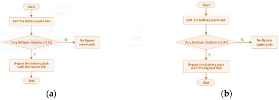 Pack-level balancing algorithm: (a) discharging mode; (b) charging mode.