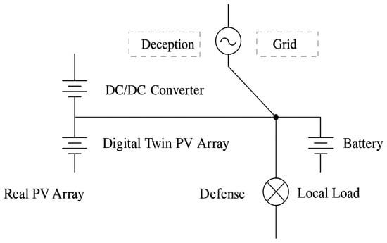 Digital twins have emerged as a promising tool for enhancing the security and efficiency of modern power systems. A digital twin is a virtual replica of a physical asset that can simulate, predict, and optimize real-world performance [19]. Recent studies have explored the application of digital twins for predictive maintenance [20], operational optimization, and anomaly detection in power grids. However, their use for cybersecurity purposes remains underdeveloped. Ref. [21] introduced a digital twin-based anomaly detection system for microgrid cybersecurity, leveraging real-time simulations to compare expected versus observed system behavior. Although this approach improves detection accuracy, it does not actively mislead attackers [22], leaving the grid vulnerable to sophisticated stealthy attacks. A more recent study by [23] explored adversarial training techniques to strengthen digital twin defenses, but the proposed framework remained reactive rather than proactively deceptive. This paper builds upon the foundation of digital twin-based security by introducing a deception-based optimization framework that actively engages cyberattackers within a fabricated digital twin environment. Unlike existing digital twin-based security models that primarily serve as monitoring tools, the proposed approach treats digital twins as an active defensive mechanism that strategically misleads adversaries, preventing them from gaining actionable intelligence on real PV system states.