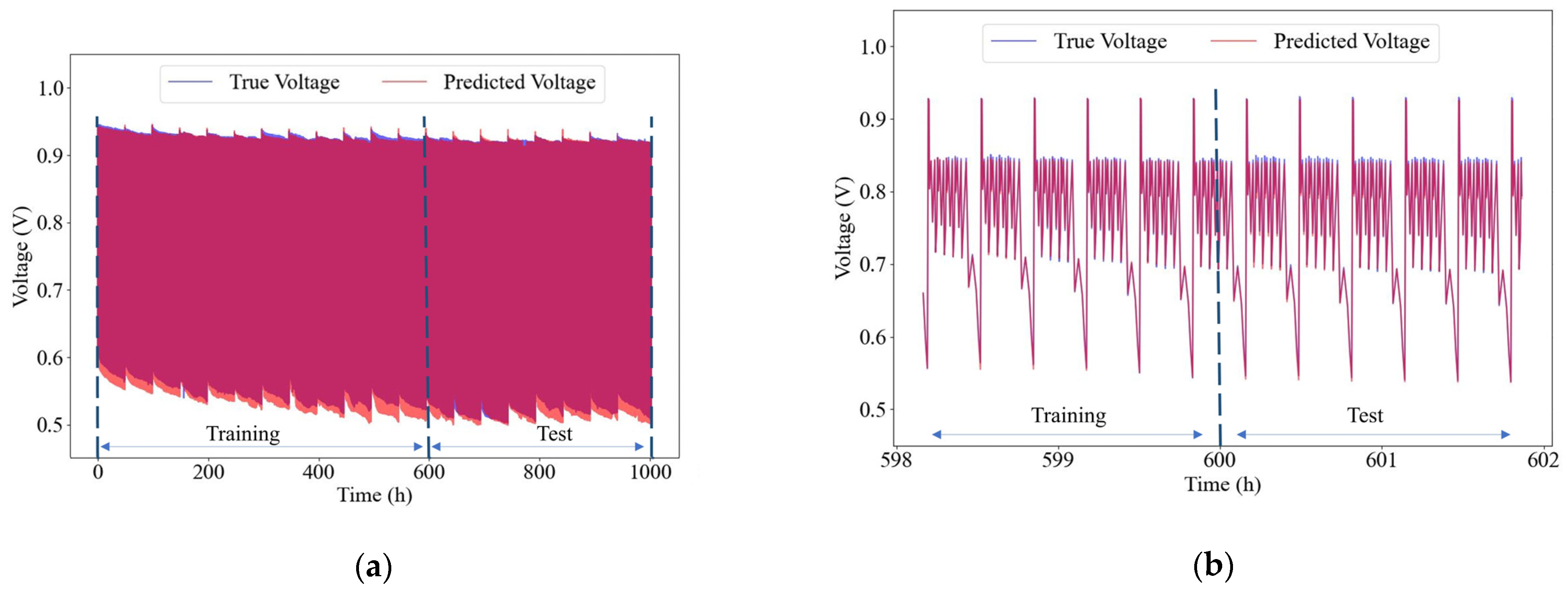 - Sahajpal, K.; Rana, K.P.S.; Kumar, V. Accurate Long-Term Prognostics of Proton Exchange Membrane Fuel Cells Using Recurrent and Convolutional Neural Networks. Int. J. Hydrogen Energy 2023, 48, 30532–30555. [Google Scholar] [CrossRef]