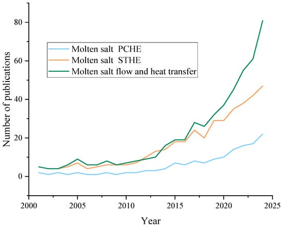 In CSP (concentrated solar power) systems, Spain’s 19.9 MW Gemasolar plant (2011) [78] demonstrated 24/7 baseload operation using 15 h molten salt storage—a milestone enabled by high-efficiency (>99%) MS-HXs. This breakthrough triggered global CSP deployments, with over 15 countries (including China, the US, and the UAE) launching projects. The rapid growth of renewable energy has significantly accelerated molten salt heat exchanger research.