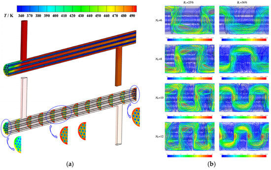 Some similar work exists, while Xie et al. [87] designed a variety of perforated shell-range baffles and used numerical simulation methods for scheme optimization, combined with genetic algorithms to optimize the opening diameters of the perforations, which achieved the goal of reducing the heat exchanger’s flow dead zones and lowering the flow resistance. And Zhang et al. [88] applied similar perforated baffles to molten salt electric heaters and optimized the best scheme, which led to an improvement in the overall performance of the electric heaters by 15.29% to 17.18% compared to the pre-optimization period.