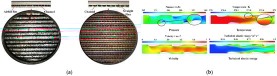 Chen et al. [99] designed an STHX with periodic transverse grooves on the tube’s side (Figure 11a). Through experiments spanning Reynolds numbers of 300–60,000 and Prandtl numbers of 11–27, they demonstrated that the grooved tubes not only significantly enhanced heat transfer performance but also reduced the critical Reynolds number for laminar-to-turbulent transition. They further proposed heat transfer correlations for different flow states, providing key data for designing MS-HXs, especially those operating near the transition regime. In a follow-up study, Chen et al. [100] addressed molten salt reactor cooling needs by developing a serpentine-coil molten salt-to-air heat exchanger (Figure 11b). Their analysis revealed that the air-side thermal resistance contributed over 80% of the total thermal resistance, highlighting the importance of optimizing air-side flow (e.g., through finned surfaces) to improve overall efficiency.