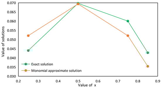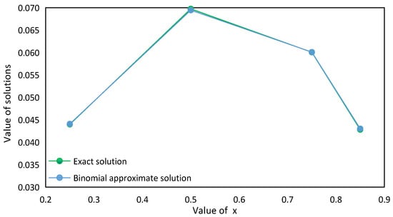 Furthermore, in order to compare with the approximate solutions and verify the accuracy of the Ritz approximate solution, it may be assumed that , to investigate the difference between the exact solution and the Ritz binomial trial solution.