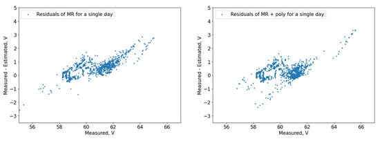 The k-fold cross (k = 5)-polynomial grid search calculations show that the MR with PR’s best results are for the third degree. The results of R2 are [0.880, 0.897, 0.886, 0.891, 0.692], with an average result of R2 0.849. If the k-folds are 25, then the best average R2 is 0.793, and the best degree is fourth. In the case of k = 3, the average R2 is 0.868; the best degree is third. These results support the conclusion that the smaller the test period, the bigger the data drift with the rest of the data and the higher the error. In this study, the test period is a single day, which makes it reasonable to search for an optimal training period.