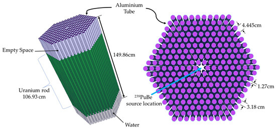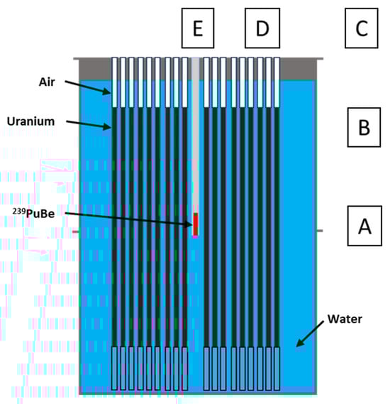 - Vega-Carrillo, H.R.; Garcia-Reyna, M.G.; Marquez-Mata, C.A.; Vazquez-Bañuelos, J.; Campillo-Rivera, G.E.; Bedenko, S.V. Effect of changing the neutron moderator in a thermal subcritical nuclear reactor. Appl. Radiat. Isot. 2022, 188, 110395. [Google Scholar] [CrossRef]