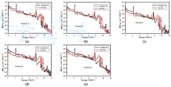 - Modulation of secondary gamma production: SS-316L modulates secondary gamma production by attenuating and modifying the neutron spectrum in a way that differs from Al-6061-T6 [56], which would influence the production of secondary gamma rays in other reactor components. Specifically, increased neutron absorption within the SS-316L tube could reduce secondary gamma production in adjacent moderators or coolants (due to the lower incident neutron fluence). In contrast, the activation of the steel tube itself would generate an additional source of gamma emission simultaneously.