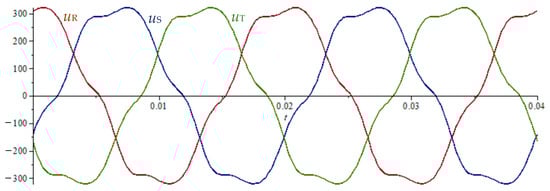 | uR, uS, uT | instantaneous voltage values relative to virtual star point, V |