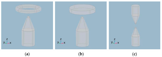 The finite element models of the three electrode structures constructed according to Table 5 are shown in Figure 8.