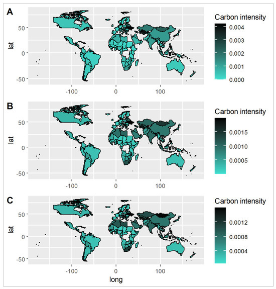 The categorization of countries into different income groups reveals that economic development significantly influences renewable energy’s carbon reduction efficacy. Developed nations, despite often having higher carbon intensity levels, tend to experience more pronounced emissions reductions from renewable energy investments. This can be attributed to better infrastructure, more efficient grid systems, and supportive regulatory frameworks that enable a smoother transition to renewables. In contrast, emerging economies may face greater challenges due to limited technical capacity and slower policy reform, which dampen the immediate impact of renewable energy on carbon intensity [22,36]. This divergence underlines the importance of tailored policies that address the specific developmental contexts of different countries.