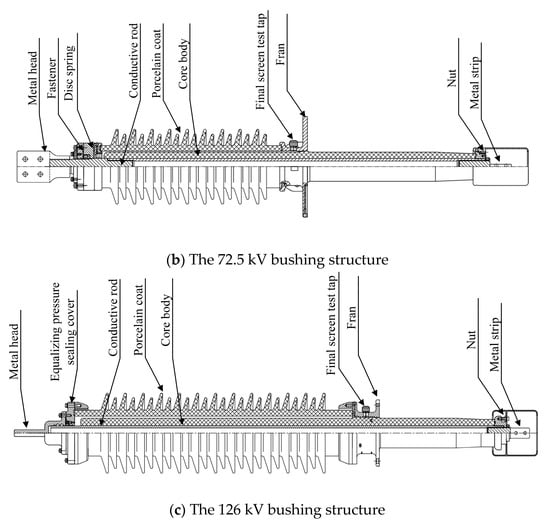A schematic diagram of bushing structures with different voltage levels.