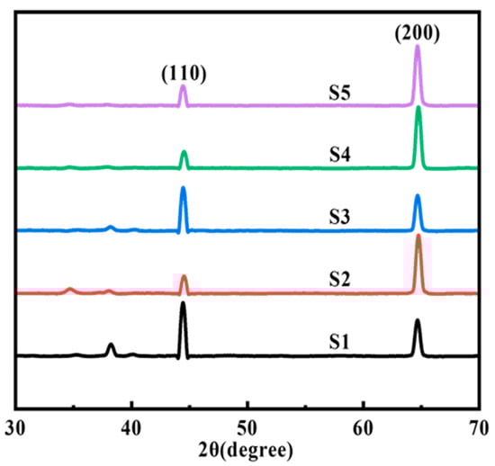 Figure 5. It shows the XRD patterns of the SS/Ti/a-C:Cr multilayer films. The samples were denoted as S1, S2, S3, S4, and S5, corresponding to the argon gas flow rates from low to high (300/350/400/450/500 sccm).