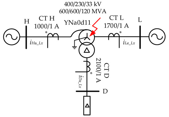For the subsequent analysis, the terminal currents on each side of the autotransformer (iH_Lx, iL_Lx, iD_Lx) were normalized using the per-unit system, and the current transformer (CT) ratios were also taken into account. Finally, the terminal currents on each side of the autotransformer (iHa_Lx, iLa_Lx, iDa_Lx) expressed in the per-unit system (with CT ratios incorporated) are as follows: